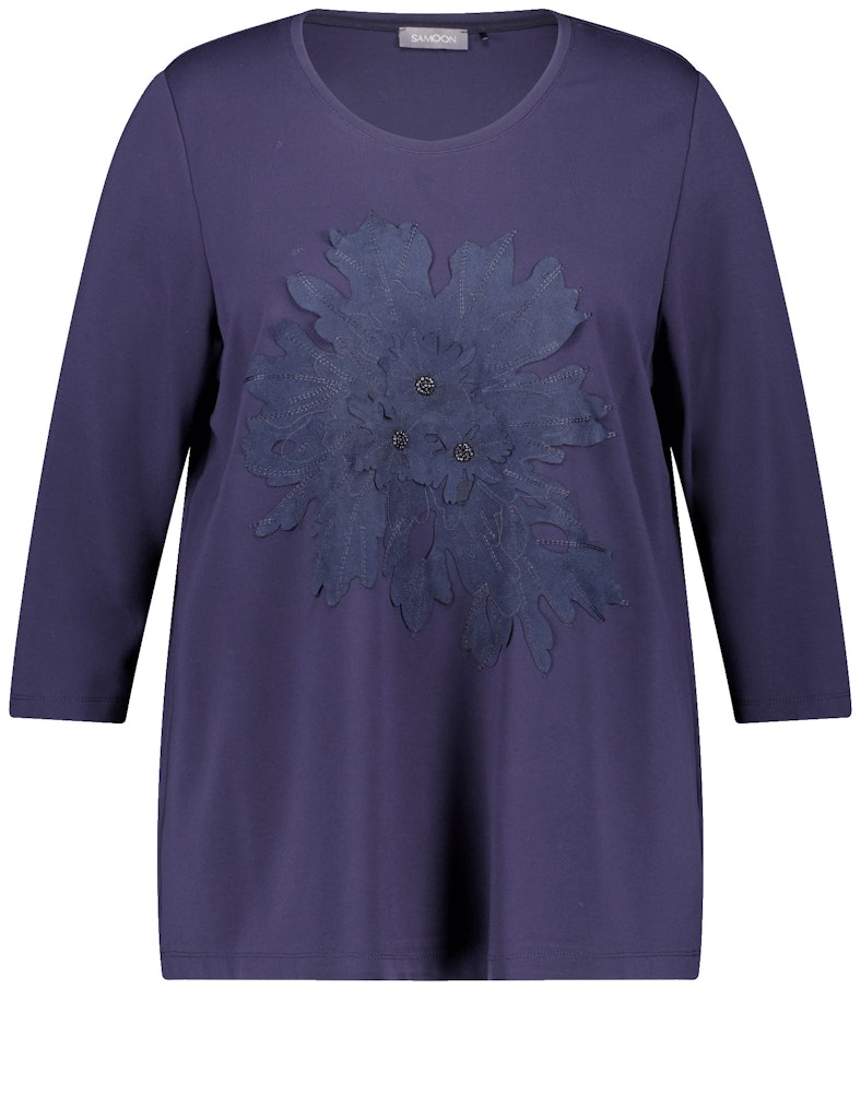 חולצת סאמון סגולה עם הדפס פרחוני ואבנים