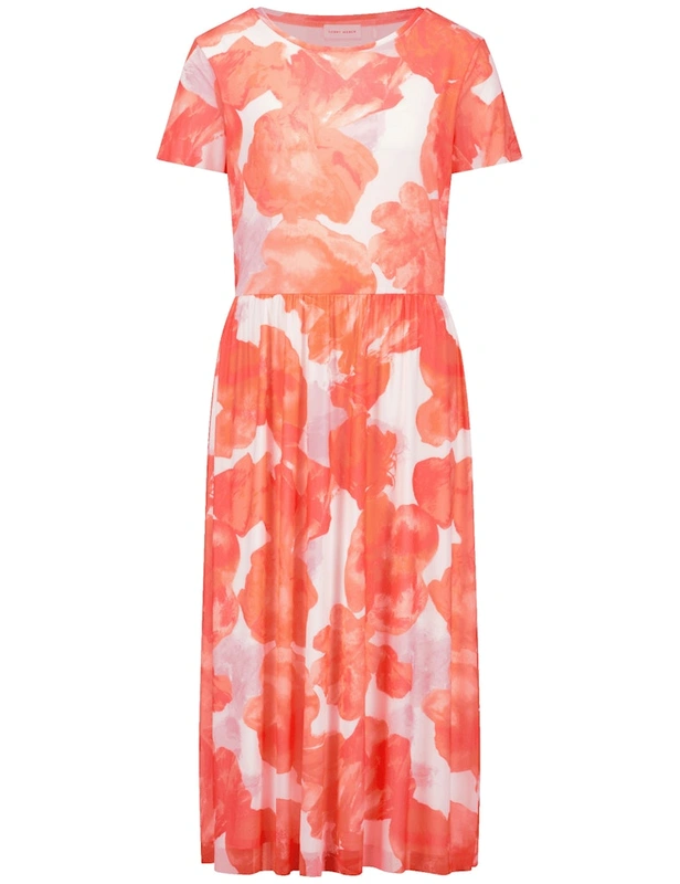 שמלה פרחונית ישרה בגווני אפרסק